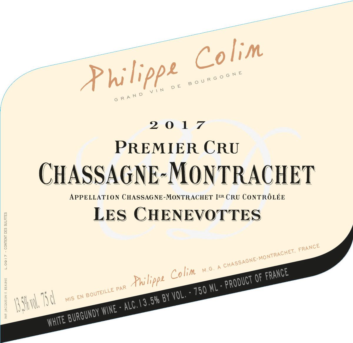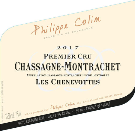 Il Chassagne-Montrachet Premier Cru Les Chenevottes 2017 è un bianco di Borgogna di altissima espressione. Questo climat, situato nella parte settentrionale del comune, produce vini eleganti e minerali, caratterizzati da una splendida tensione aromatica e una struttura raffinata.
