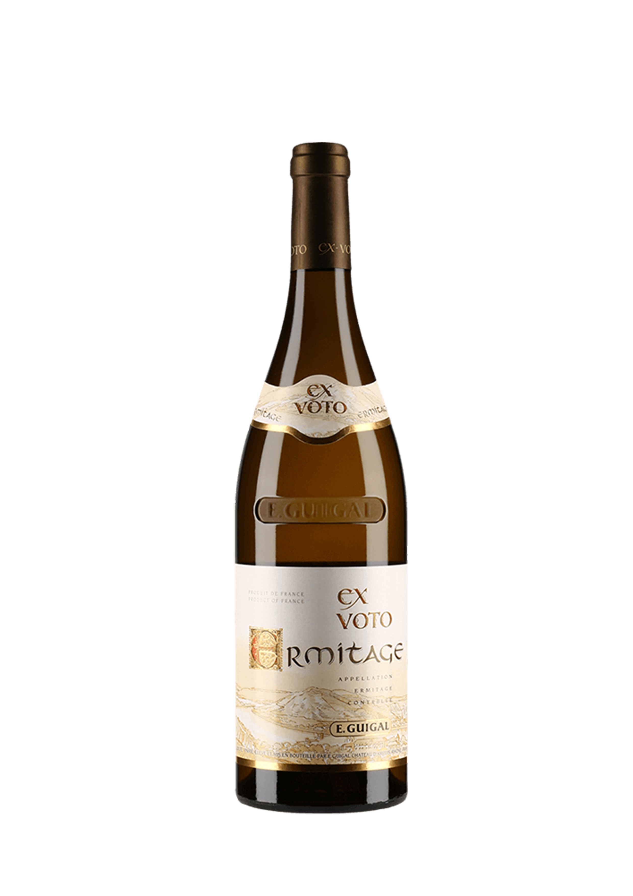 Ermitage bianco di culto della maison Guigal. L'Ex Voto rappresenta la massima espressione dell'Hermitage blanc, prodotto in quantità limitatissime. Assemblaggio di Marsanne da parcelle storiche, affinato per 24 mesi in barrique nuove.