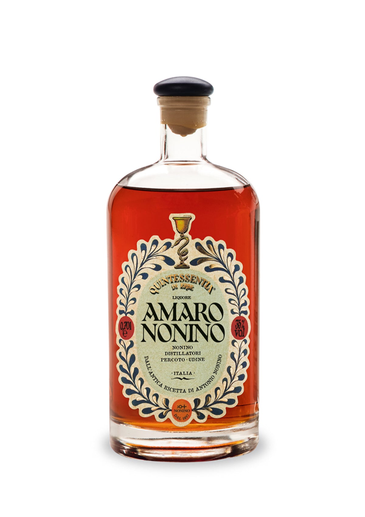 L'Amaro Nonino Quintessentia è un distillato di erbe nobile e raffinato, frutto della secolare tradizione della Famiglia Nonino. Questo amaro nasce dall'infusione di erbe selezionate tra cui genziana, china, scorze d'arancia e vaniglia, con l'aggiunta di una base di Grappa Nonino. Al naso si apre con un bouquet complesso ed elegante, dove si intrecciano note erbacee, agrumate e speziate. Al palato è sorprendentemente morbido e armonioso, con un perfetto equilibrio tra amaro, dolce e aromatico, e un finale persistente e caldo.