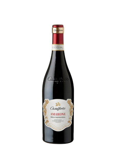 L'Amarone della Valpolicella 2019 di Casalforte incarna la tradizione e l'eleganza dei vini veronesi. Ottenuto da uve appassite secondo l'antica tecnica della regione, questo vino unisce potenza e complessità. Al naso si svela con note di amarena matura, prugna secca e sentori di cioccolato fondente, arricchite da delicate sfumature di tabacco e spezie dolci. Al palato è opulento e avvolgente, con tannini setosi e una piacevole freschezza che bilancia la ricchezza aromatica, concludendo con un finale lungo e persistente.