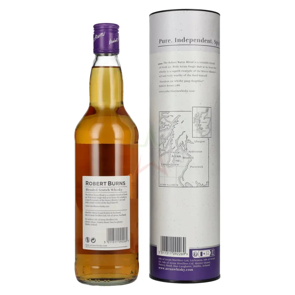 Arran Robert Burns è un single malt dedicato al celebre poeta scozzese Robert Burns. Prodotto nell'Isola di Arran, questo whisky incarna l'eleganza e la tradizione scozzese, con un carattere leggero e fruttato tipico dei single malt delle isole occidentali.